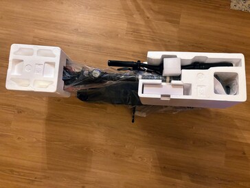 The Joyor S5 is delivered in a large cardboard box and is well protected. In addition to the scooter, the packaging contains a charger, operating instructions, a multi-tool, and a spare inner tube.