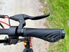 For ergonomics, there is a large footboard on which both feet can sit side by side. It is also rubberized and profiled. The grips have ergonomic fins, and the brake levers are not adjustable but are also ergonomically shaped. The bell is integrated into the bracket on the left brake lever and is easy to reach.