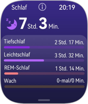 The Huawei Watch Fit 4 Pro differentiates between light, deep, and REM sleep and reliably detects even short waking phases in tests. Integrated breathing detection is designed to identify breathing pauses during sleep. The watch also provides information on heart rate, HRV, oxygen saturation, and respiratory rate. With the support of a nearby smartphone, snoring, sleep talking, and ambient noise can also be recorded.