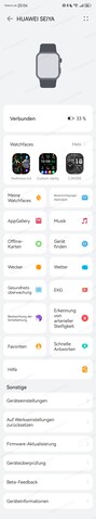The health app hasn't changed fundamentally and is structured the same way as the Watch Fit 3. The overview tiles can be freely sorted, shown, or hidden. In the device settings, you can customize offline maps/music, watch faces, health monitoring, and install firmware updates, among other things.