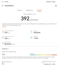 The Huawei Watch Fit 4 Pro displays activity goals in two ways. Firstly, via rings that display time spent standing, exercise duration, and calories burned, and secondly, via so-called Health Clovers that track sleep, steps, and mood and are populated by daily tasks. Both displays are customizable and can be viewed both on the watch and in the app. The app also offers detailed activity reports such as daily, weekly, monthly, and annual step counts, including calorie consumption, distance, and a breakdown by walking, running, and (stair) climbing.