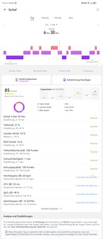 The sleep analysis is broken down in detail and supplemented by recommendations for improving sleep quality, and this is no different to a premium model such as the Watch 5.