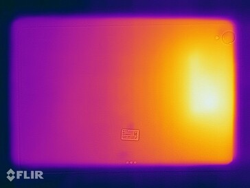 The Samsung tablet's case heats up heterogeneously under sustained load, and this is accompanied by moderate throttling. 3DMark tests show that dips in performance during long periods of load amount to approximately 15 to 40 percent.