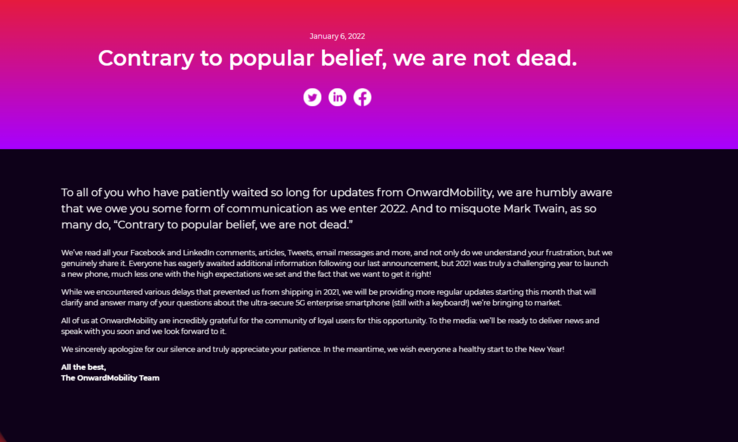 The US-based company has proclaimed that it's not dead and still has plans to release a 5G BlackBerry device this year. The company blames the lack of a 2021 launch on "various delays" it encountered, but promises to provide more updates on the phone moving forward.