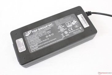 Charging the main battery from empty to full capacity takes about 1.5 hours with the included proprietary AC adapter. Users can also recharge the laptop via USB-C.