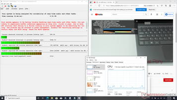 The relatively poor CPU performance can be observed when running Prime95. Clock rates would spike to 3.9 GHz for only the first few seconds until hitting a core temperature of 82 C. Thereafter, clock rates would drop and stabilize in the 1.8 to 1.9 GHz range in order to maintain a cooler core temperature of 63 C. Typical consumer laptops with the same Core i7-1165G7 CPU like the Dell XPS 13 or Razer Book 13 are able to sustain higher clock rates for faster processor performance.