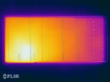 (+) In idle usage, the average temperature for the upper side is 27 °C / 81 F, compared to the device average of 32.9 °C / 91 F.