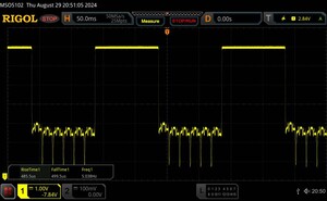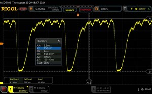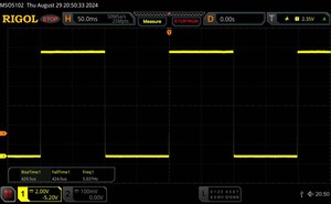 Under the oscilloscope, the OLED panel flickers at a steady 60 Hz, showing an extremely uniform amplitude curve. Nubia claims the display uses PWM dimming with up to 2,160 Hz, and our manual measurements largely confirm this. At minimum brightness, we detect a 2,000 Hz flicker rate.