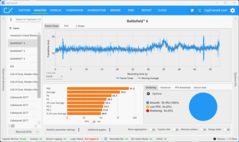 The fact that there is a VRAM warning, however, does not mean that you necessarily experience issues while gaming. With maximum load for the RTX 5070 (highest VRAM load, but still smoothly playable), we used the setting 2560 x 1600 pixels, Raytracing (High), DLSS and Frame Generation (QHD RT is not playable without DLSS, but at the same time 4K with RT is not always above 30 fps, despite DLSS and MFGx4) and played the multiplayer. As an example, the following analysis shows a multiplayer match, and it clearly shows that there are no limitations. The RTX 5070 Ti with 12 GB VRAM does not have any issues with the 4K resolution.