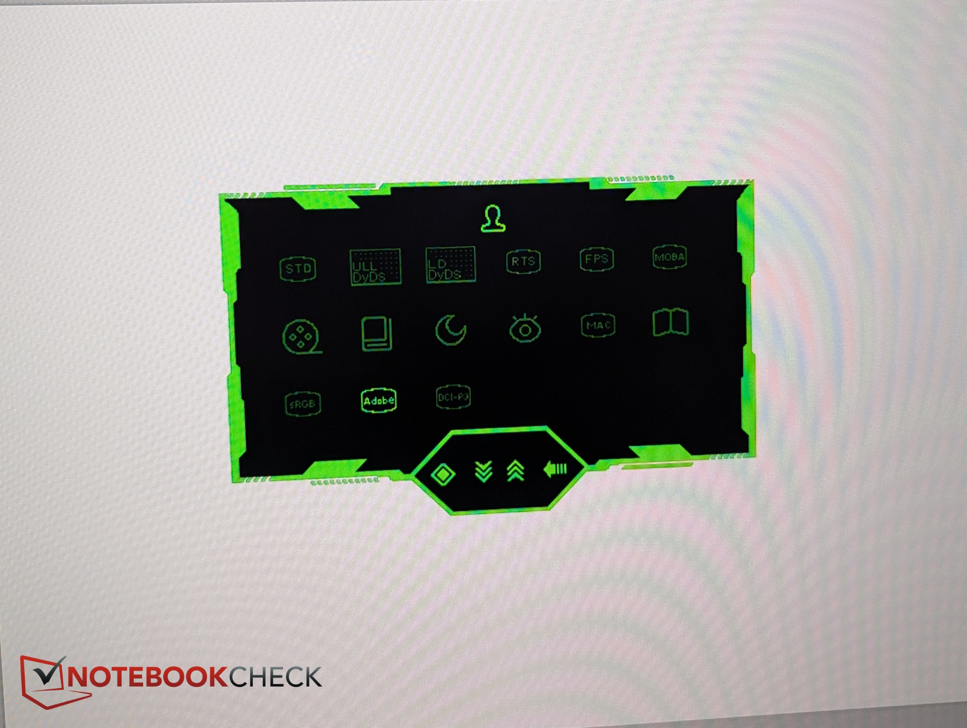 Navigating the on-screen display can be frustrating. Instead of a joystick, the monitor uses five physical buttons.