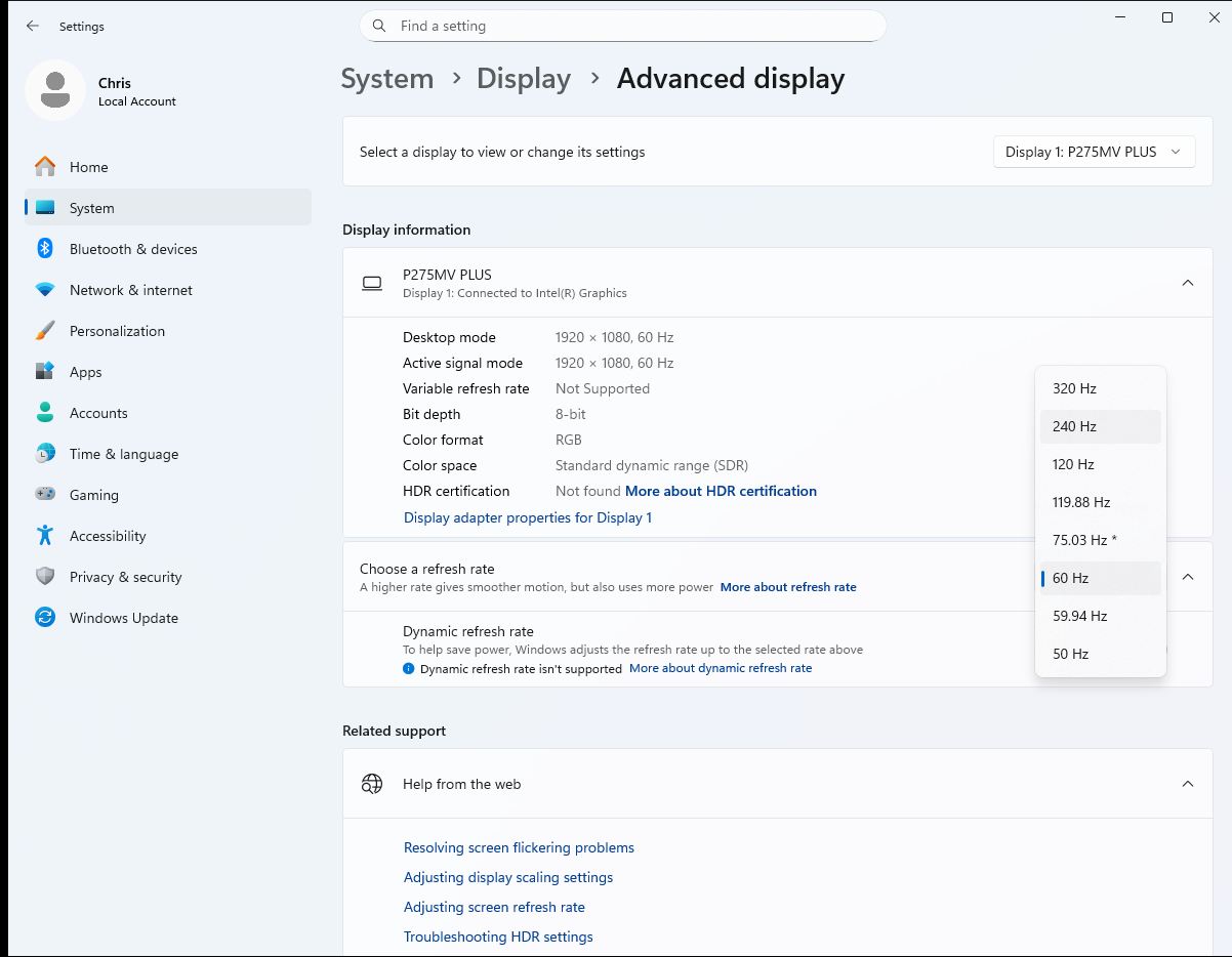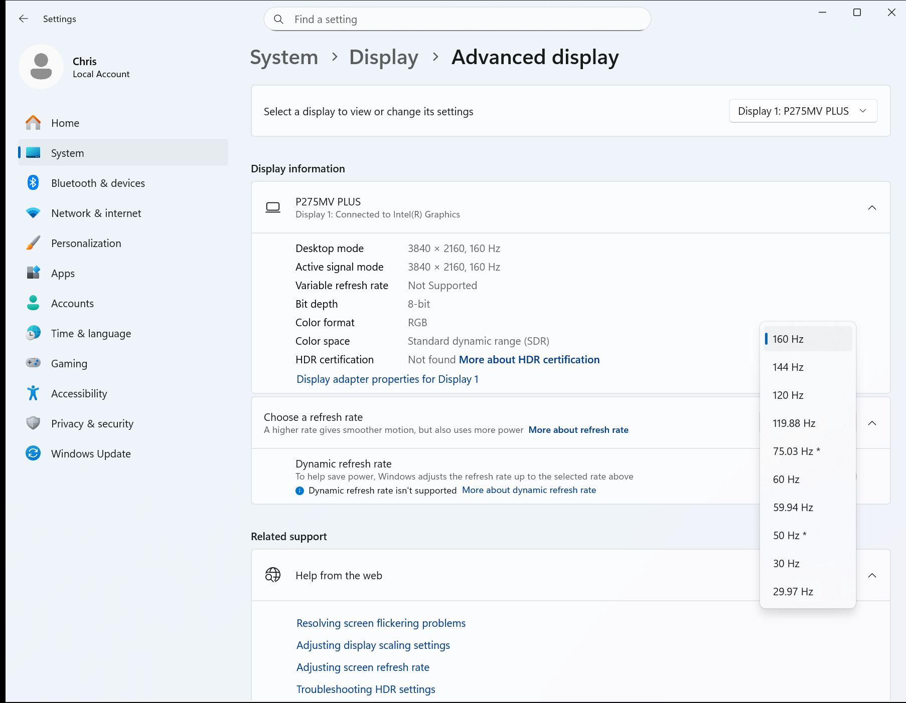 The dual mode is clearly the highlight. At native 4K resolution, the monitor runs at up to 160 Hz. Switch to 1920 × 1080, and refresh rate jumps to 320 Hz.