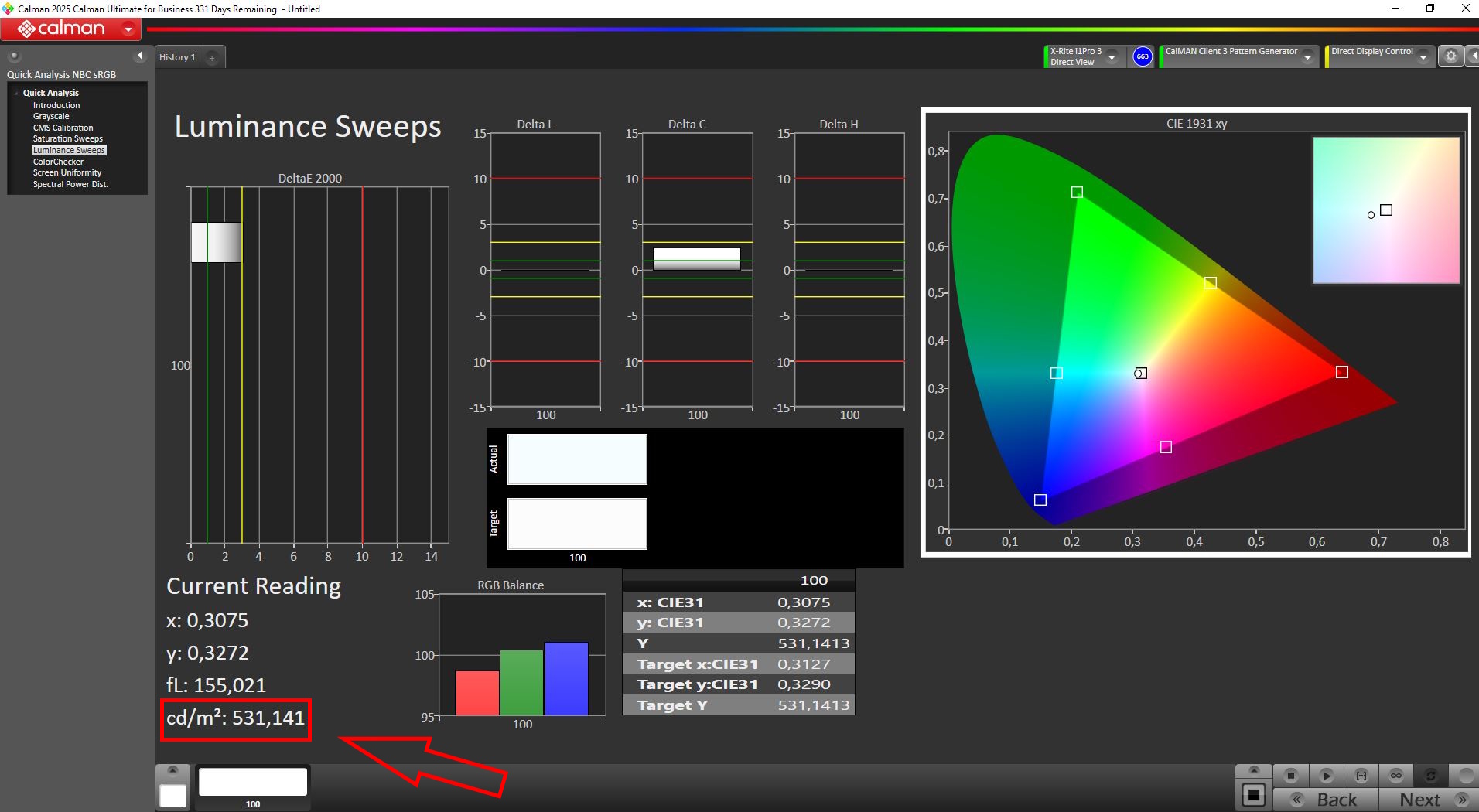 At 100% brightness, the panel reaches roughly 530 nits.