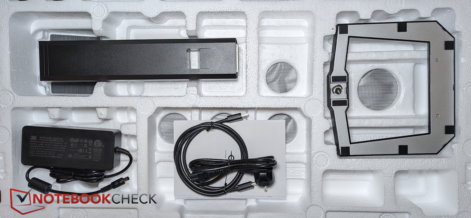 Included in the box is a DisplayPort-to-DisplayPort cable. The external power supply, however, is quite large.