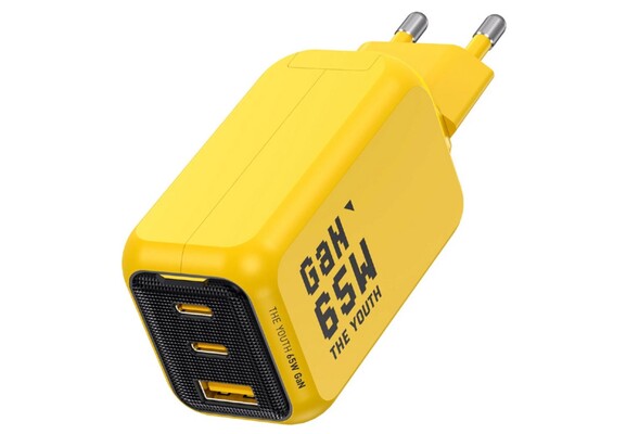 Either way, the new Aohi Youth PD PPS 65W 3-Port Foldable Charger stands out visually, since most other products in this category are either gray or black. This one comes in a striking yellow design, but the EU model is actually not foldable, which contradicts its own product name. Only the US version can be folded to reduce its dimensions for transport and storage. That being said, the 65-watt charger is relatively compact as is and measures 72 x 43 x 35 mm.