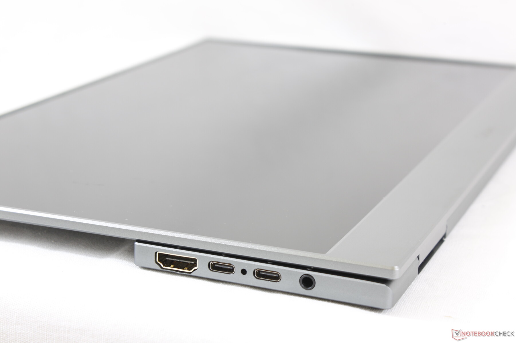 There are more ports options on the BladeX than on many newer Ultrabooks these days. Users have full-size HDMI and four USB ports distributed along the left and right edges to work with. Note that recharging can only be done via one of the USB Type-C ports along the left edge.