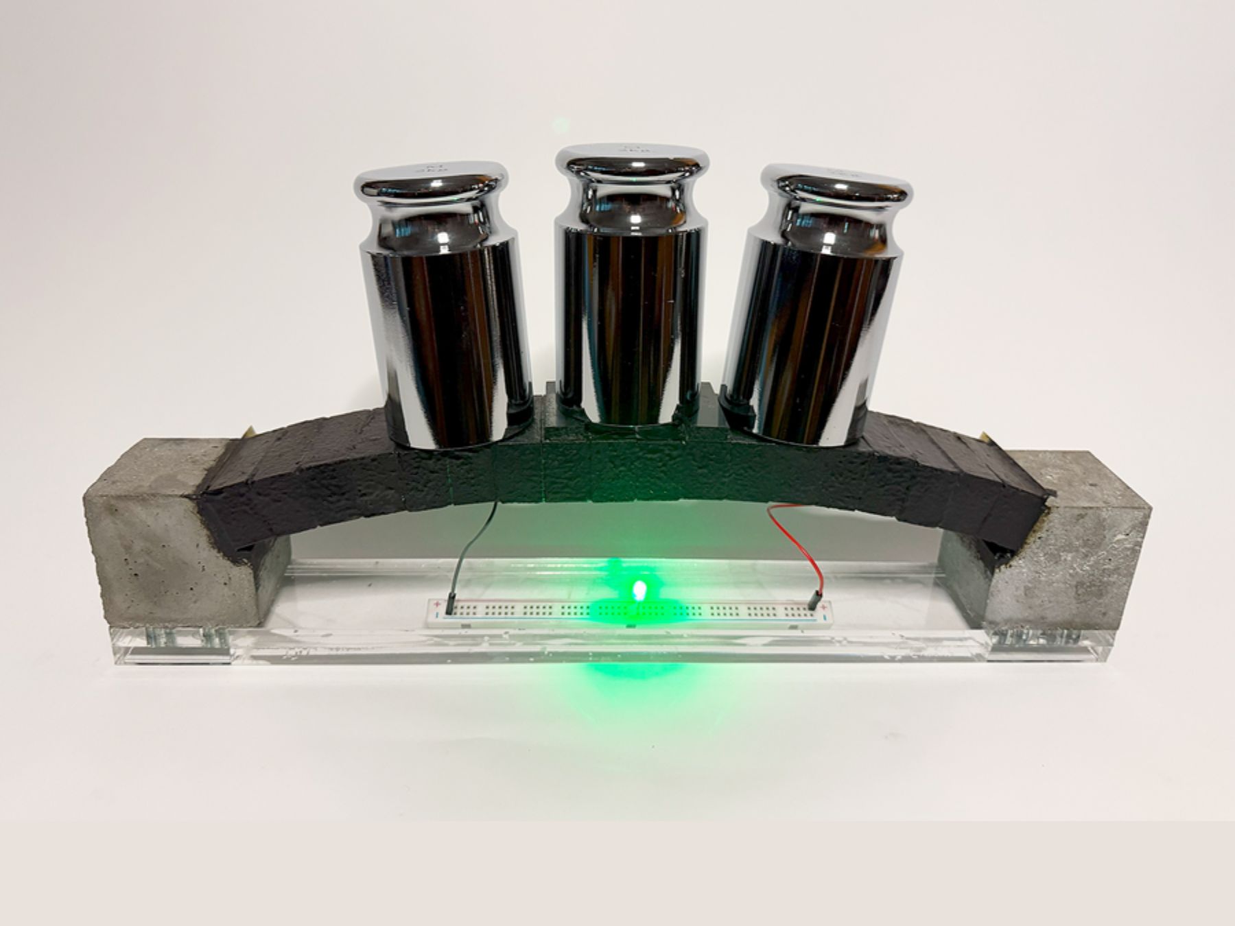 The scientists discovered that seawater can be used as a viable electrolyte, showing potential application in offshore structures. They also demonstrated it could be used for structural health monitoring by using a 9-volt arch made from the material to power an LED which flickered when the arch was put under physical stress.