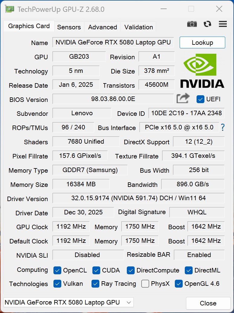 | Lenovo ThinkPad T16g Gen 3 RTX 5080 | |