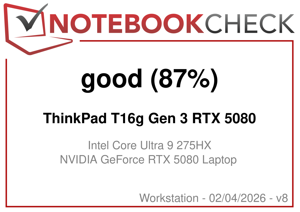 This year, Lenovo has completely redesigned its large ThinkPad P16 Gen 3 workstation, with the manufacturer also offering the virtually identical ThinkPad T16g Gen 3, which replaces the RTX PRO GPU with a regular GeForce GPU. We reviewed the high-end variant with the Core Ultra 9 275HX, the GeForce RTX 5080 laptop graphics card, 64 GB of RAM, and the matte tandem OLED touchscreen, priced at approximately $5,600.