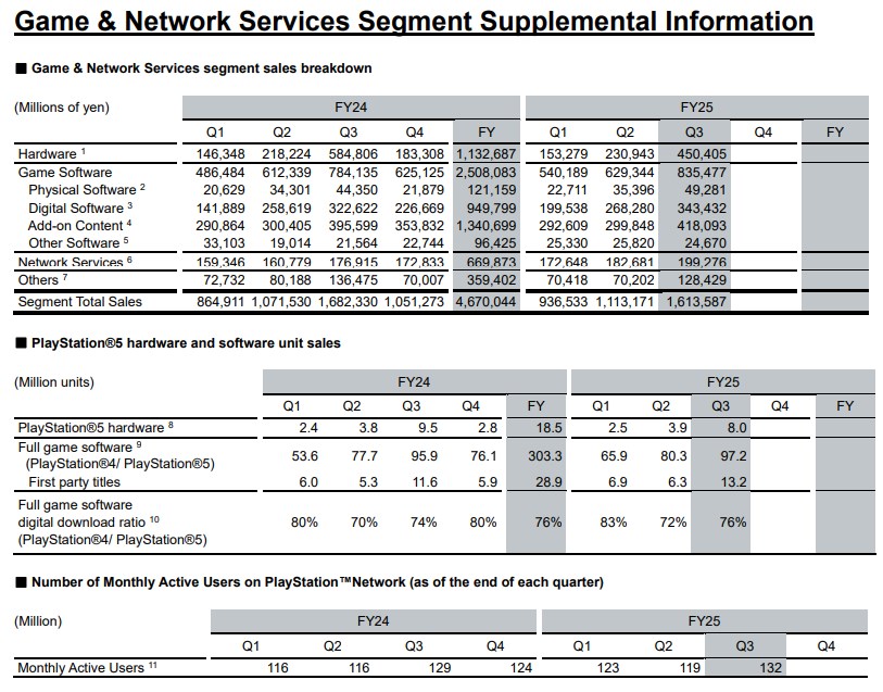 The company also reported 132 million monthly active users on PlayStation Network as of December 31, 2025. That number is up by three million compared to the same period last fiscal year.