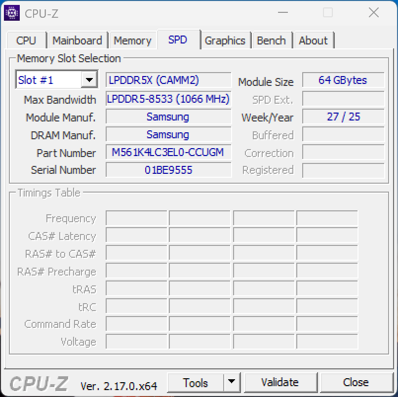 Overall, maintenance options are good, and the RAM can be replaced thanks to a CAMM2 module, although the maximum supported capacity is limited to 64 GB. There are also two M.2-2280 SSD slots (PCIe 5.0), and the battery can be replaced as well. The Wi-Fi module, however, is soldered in place.