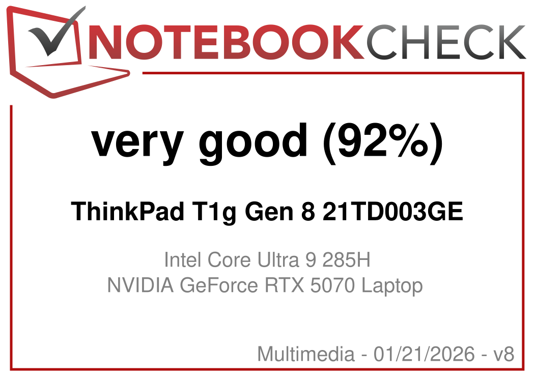 Pricing for the ThinkPad T1g Gen 8 starts at around €2,900. Our review unit is the high-end configuration featuring the Intel Core Ultra 9 285H, GeForce RTX 5070, 64 GB of RAM, a 2 TB SSD, and the matte 120-Hz tandem OLED touchscreen, which comes in at approximately €4,500.