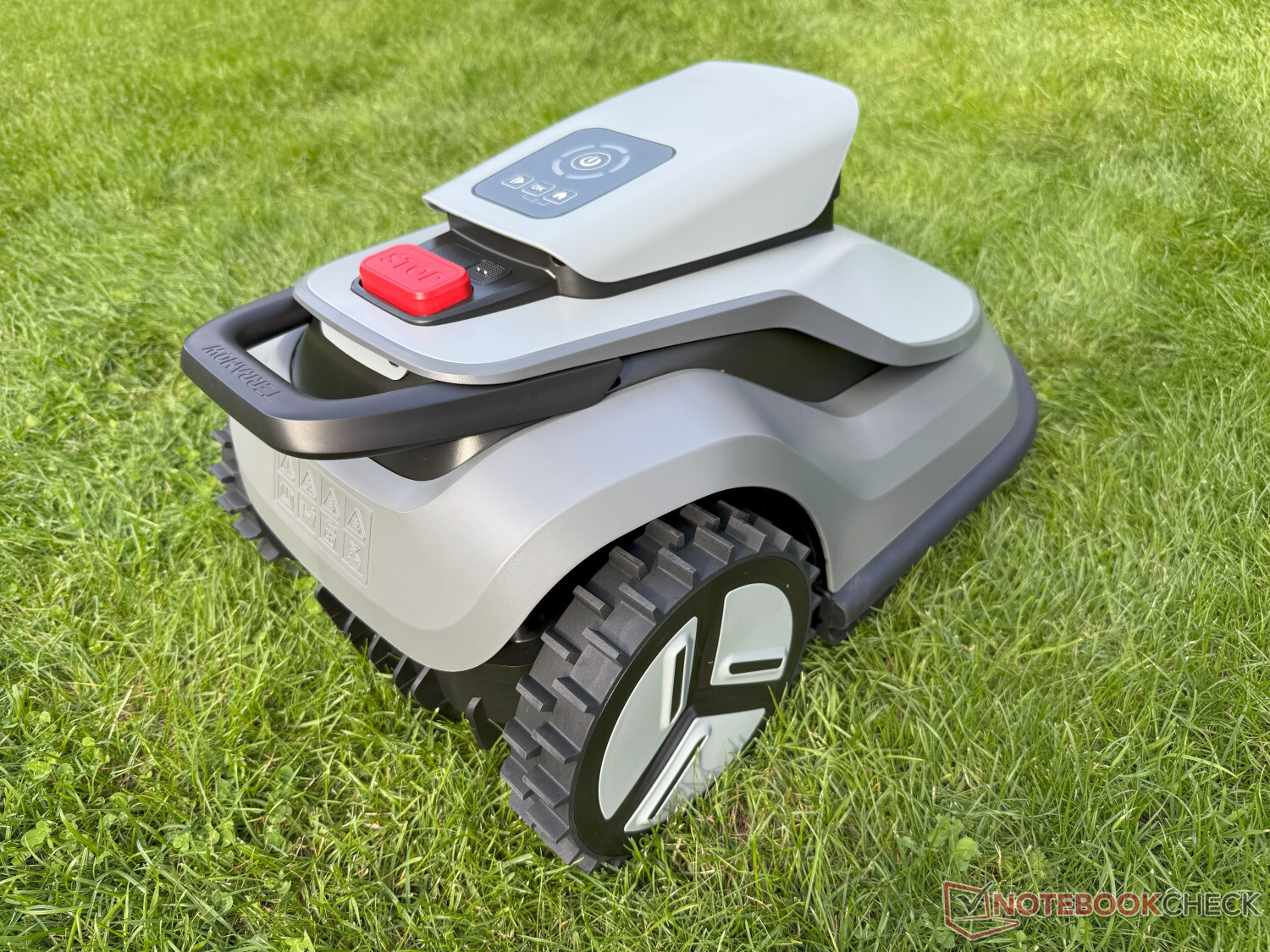 The TerraMow V1000 looks a little more modern and appealing than its predecessor. One positive aspect is that the manufacturer has still fitted a solid handle at the rear for carrying the relatively lightweight robot mower, which weighs less than 12 kg.