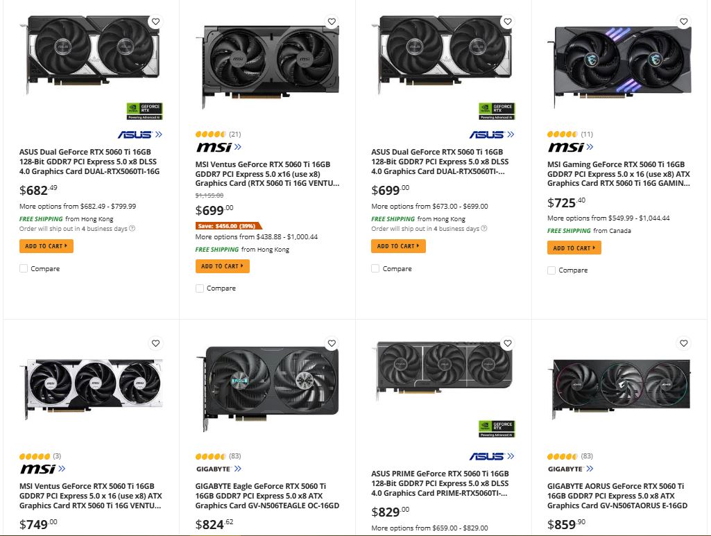 For instance, most RTX 5070 Ti AIB variants on Newegg are currently retailing for much more than the $749 MSRP. The same goes for the RTX 5060 Ti 16 GB. Fortunately, the RX 9070 and RX 9070 XT are still retailing at reasonable prices.