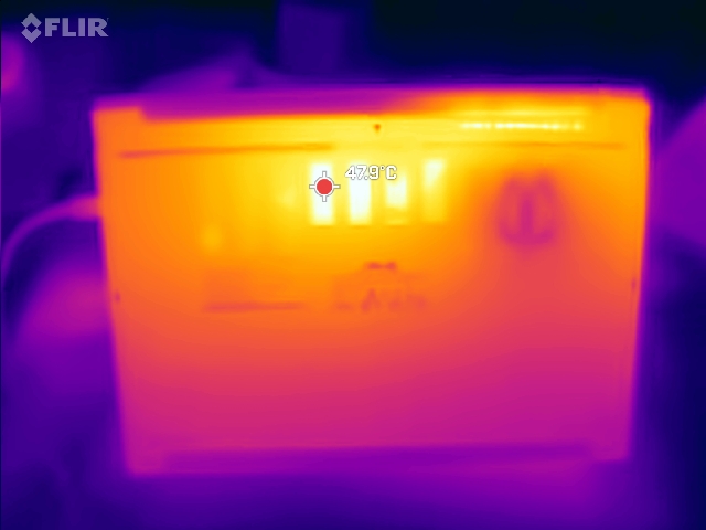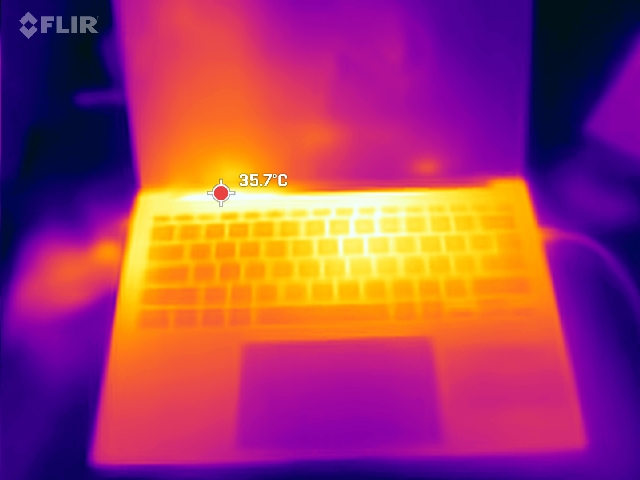 (±) 3: The average temperature for the upper side is 35.7 °C / 96 F, compared to the average of 30.8 °C / 87 F for the class Subnotebook.