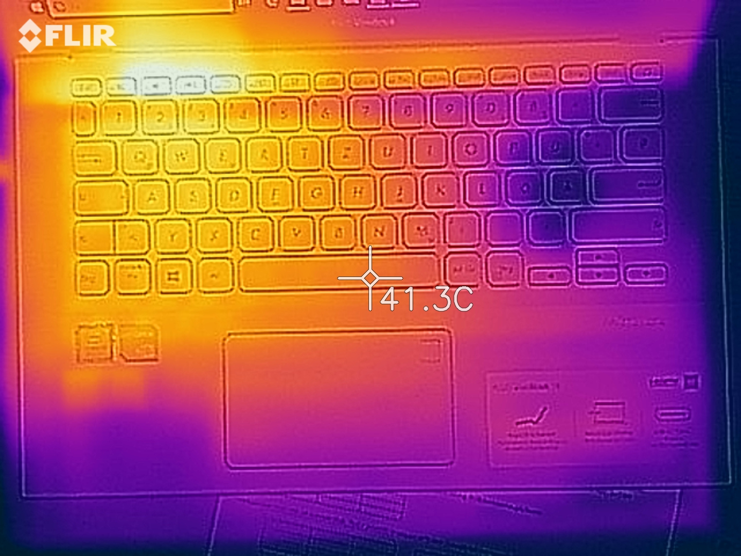 (+) The palmrests and touchpad are cooler than skin temperature with a maximum of 31.6 °C / 88.9 F and are therefore cool to the touch.