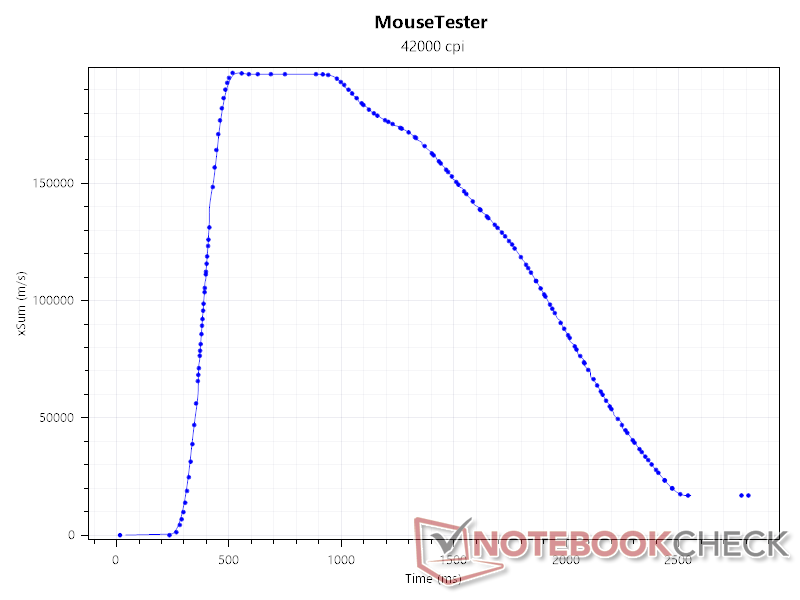 SRAV or speed-related accurcy variance tells us if the sensor has any inherent acceleration. To test it, we rapidly accelerated and then slowly decelerated the Duckbill Ultra to and from a set position, and observed the following graph. The sensor shows no sign of acceleration, but the data does get a little skewed at higher DPI counts.