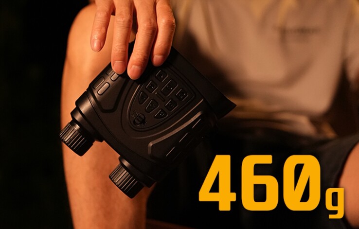 The Accuro N1 looks like a pair of binoculars, but it is actually a digital camera. On the front, it features a lens and a flashlight with an infrared LED. The manufacturer primarily advertises the device by claiming that it can capture bright photos and videos with low image noise, even in very low light, thanks to a particularly light-sensitive sensor and an f/1.0 lens.