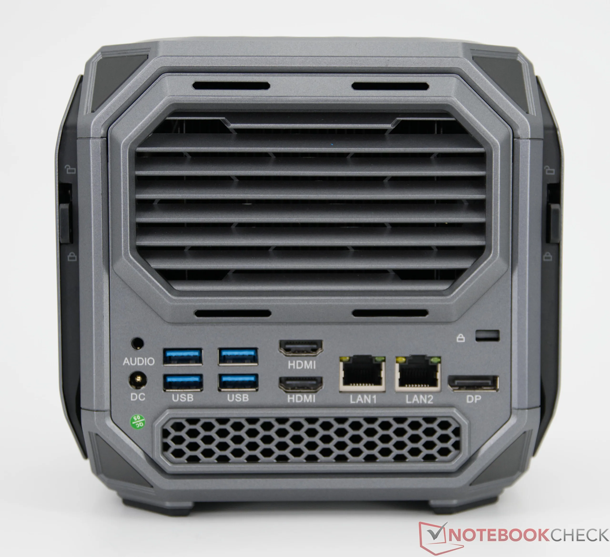 Despite the compact cube design, the M1A Pro+ delivers impressive system and graphics performance. In benchmarks, the device is on a par with other systems with the same APU and is suitable for both demanding workloads and gaming in Full HD. Dedicated AI acceleration is also available, which can accelerate modern AI workflows. A practical detail is the rotary control on the front of the housing. It can be used to quickly switch between different performance profiles without restarting or changing the BIOS. This allows the performance to be flexibly adapted to the respective workload.