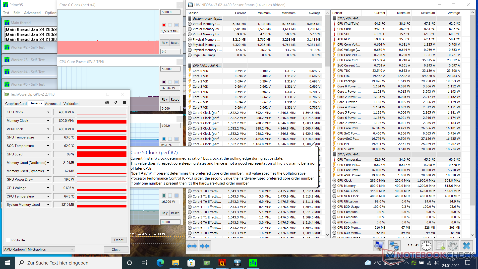 | CPU Clock (GHz) | GPU Clock (MHz) | Average CPU Temperature (°C, °F) | Average GPU Temperature (°C, °F) | |