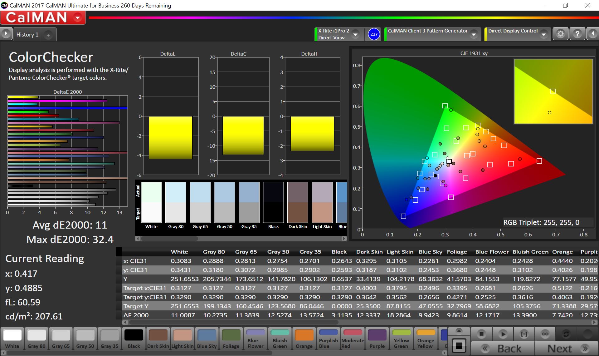 ΔE ColorChecker Calman: 11 | ∀{0.5-29.43 Ø4.79}