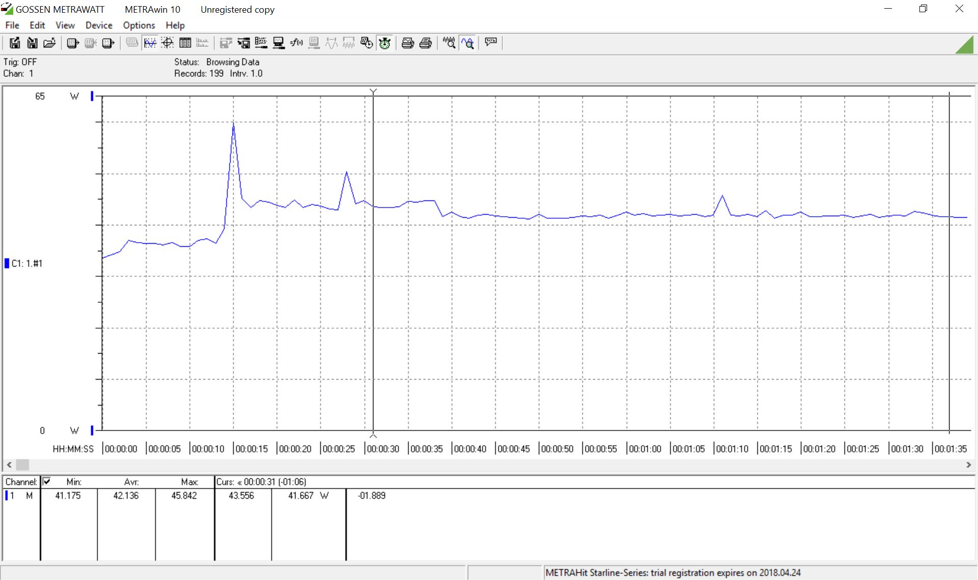 With its power consumption, the Aspire 5 places within a good average and does not act particularly different than the other comparison devices. The Intel Core i5-8250U together with the GeForce MX130 consume 49.4 watts under load on average and the peak is at 68 watts. However, we can say that the 65-Watt power supply is dimensioned large enough here and is still able to maintain the battery level or even capable of charging the battery during high demands.