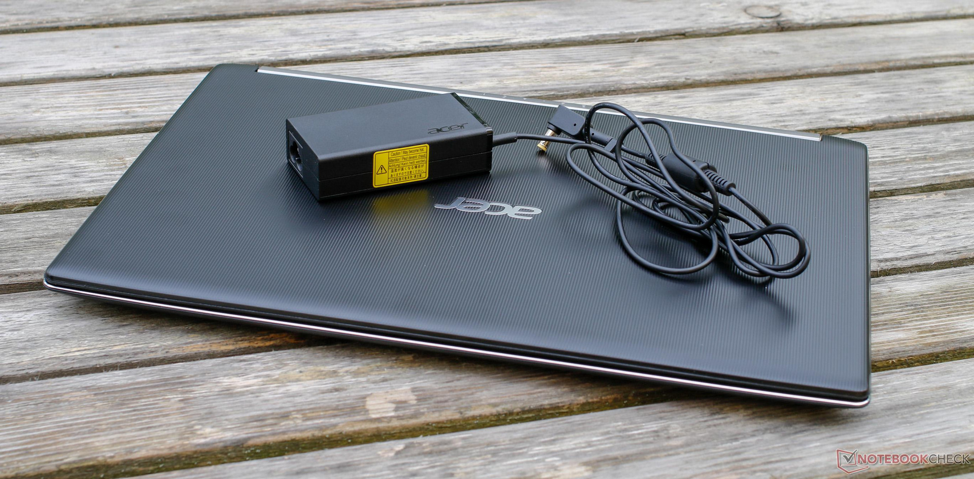 With a footprint of 38.1 x 26.3 cm (15 x 10.4 in) and a weight of 2.2 kg (~4.9 lb) without the power supply, we have a work laptop here that is slightly larger and heavier than its direct comparison models in the 15-inch category. At a thickness of 2.16 cm (~0.85 in), the Aspire is not really one of the slimmer laptops either. You will also notice this as soon as you hold the 15-incher in your hands. On the other hand, the power supply turned out more compact and light.