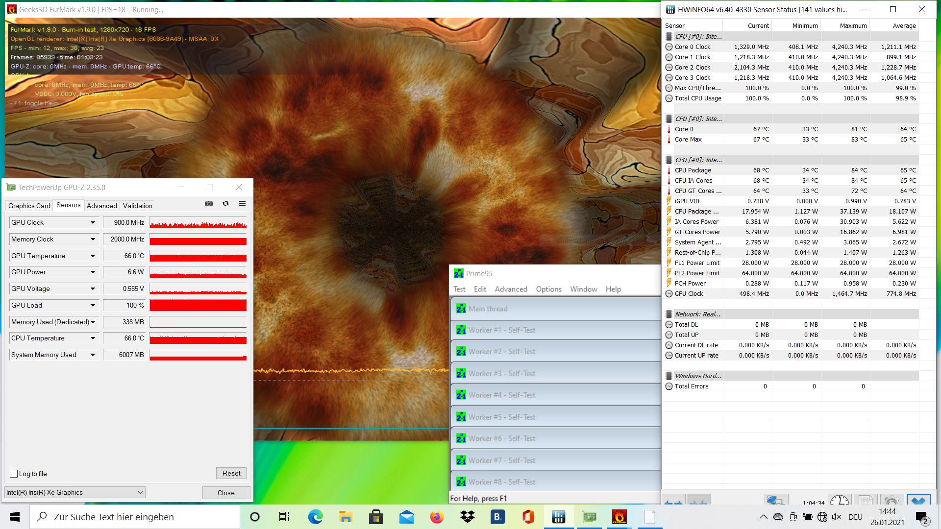 The Cinebench R15 single-core result positions our Intel Core i5-1135G7 at the front of our comparison field. The multi-core result, on the other hand, remains below our expectations. The performance is rather meager during our continuous load test as well, although at least it remains stable throughout after a small drop at the beginning.
