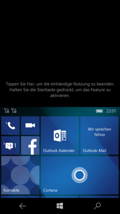 Using Windows 10 Mobile is intuitive overall, and it is a good alternative for newcomers. However, the biggest problem is the limited app offerings. Especially users switching from Android or iOS should inform themselves about app availability beforehand. Unfortunately, unlocking the review sample via Windows Hello is not supported. The lower part of some apps are covered due to the virtual controls and it could thus happen that check boxes are barely visible (e.g. GFXBench). Then, the controls have to be faded out by swiping upward.