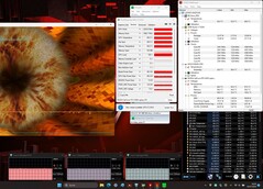 The stress test (Prime95 and Furmark in continuous operation) is an extreme scenario for testing the system stability under full load. The CPU starts the stress test with clock rates of 4.1 to 4.2 GHz, the graphics core runs at 2.3 to 2.4 GHz. The rates drop to 2.6 GHz (processor) and 2.2 GHz (graphics core) in the further course of the test.