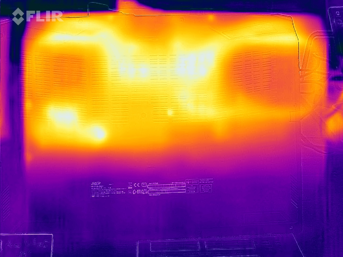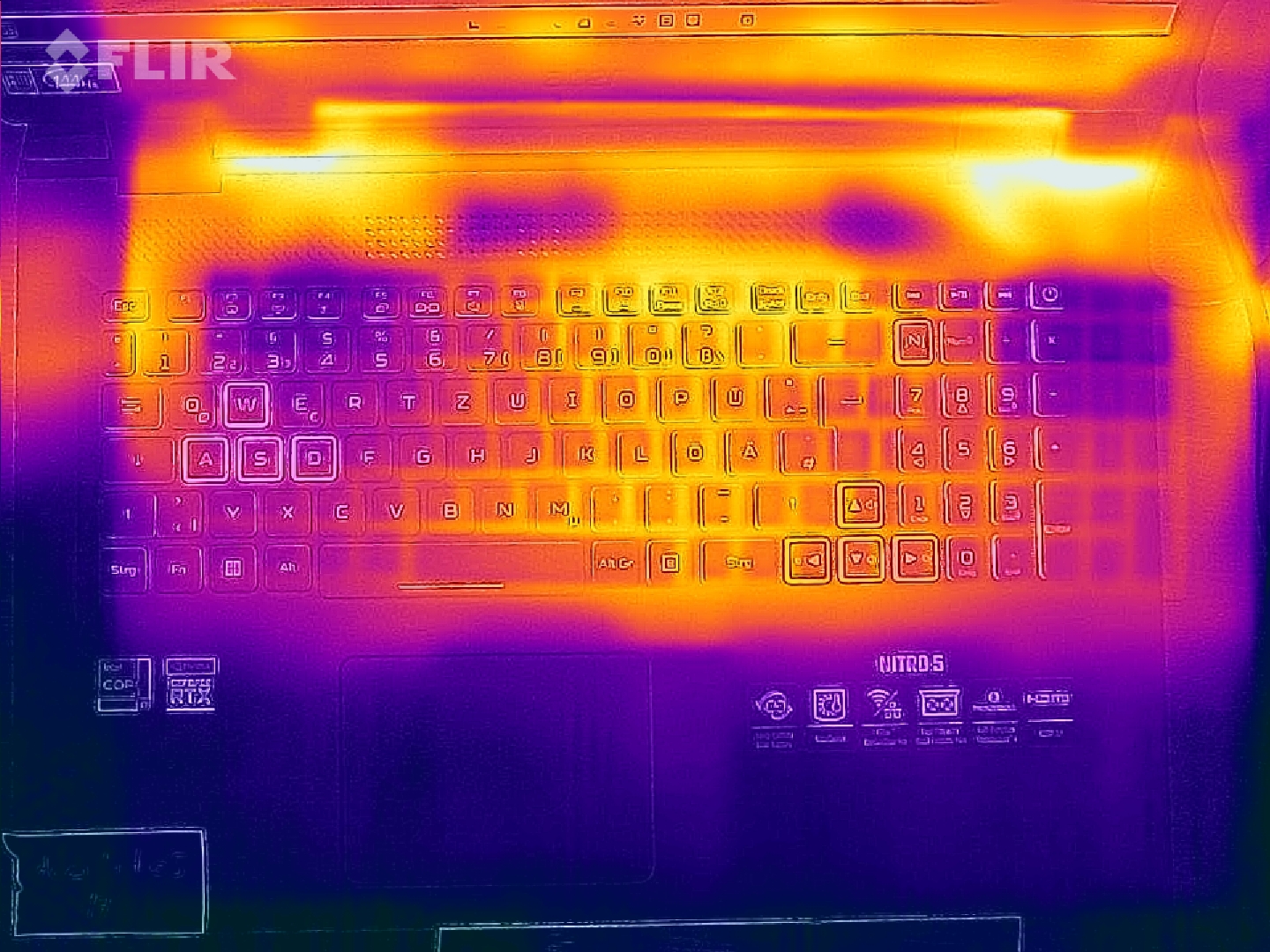 The case temperatures do not leave much room for criticism. At no point is 50 °C exceeded under load. When idling, the Acer Nitro 5 AN517 performs slightly worse in direct comparison to the competition, but this is not a big deal.