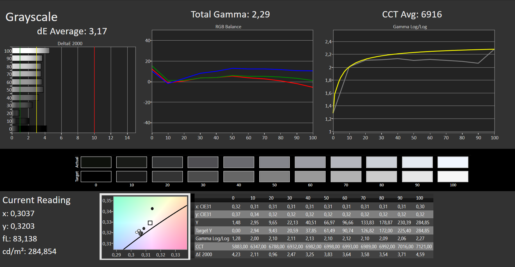 ΔE Greyscale Calman: 3.17 | ∀{0.09-98 Ø5}