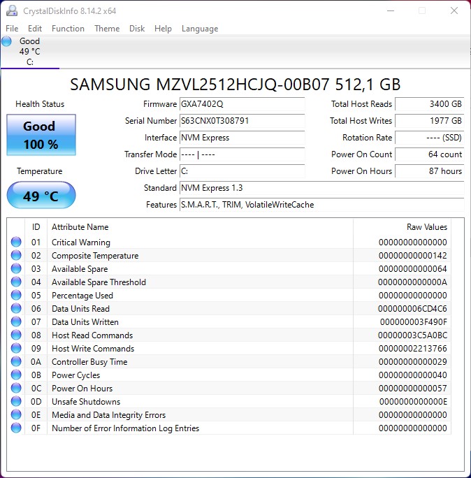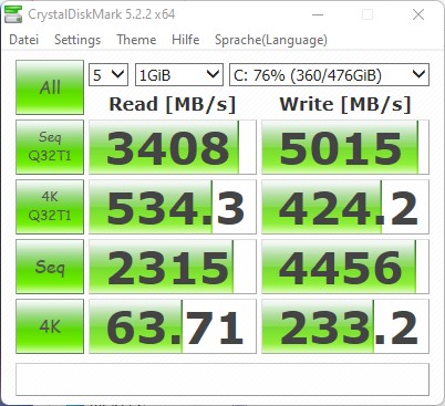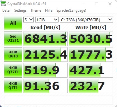 Due to the device class, the performance of the CPU and GPU is decisive. The interplay of the Intel Core i7-12700H and the Nvidia GeForce RTX 3060 laptop GPU is good and completely sufficient for the native display resolution. The 16 GB DDR4 RAM is also good and not too stingy, so there were no problems during testing. However, criticism extends to the installed SSD because 512 GB becomes are quickly full due to the space demanded by current games. It could be more here.