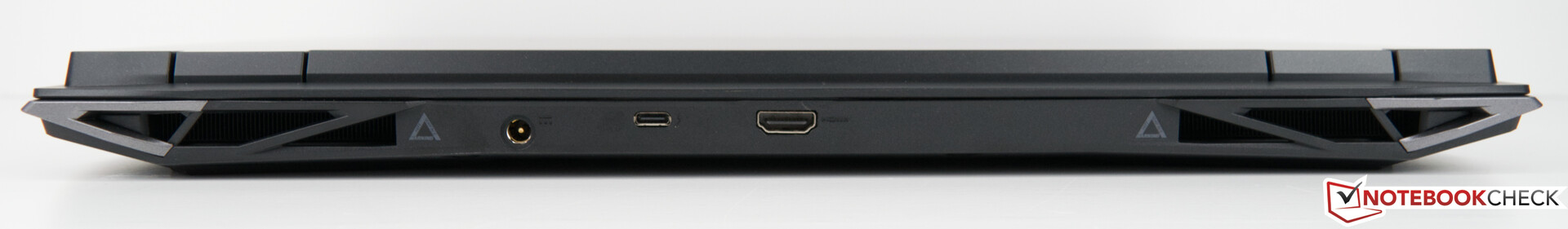 The Acer Nitro 5 AN517 offers a good range of standard external ports, including Thunderbolt 4. However, the fact that there are only 3x USB Type-A, which is merely average for a 17-inch device, should be viewed critically. There certainly would have been enough room for more ports. An SD card reader is also missing. While the distribution of the ports is good, this is hardly commendable given the number of ports and the available space.