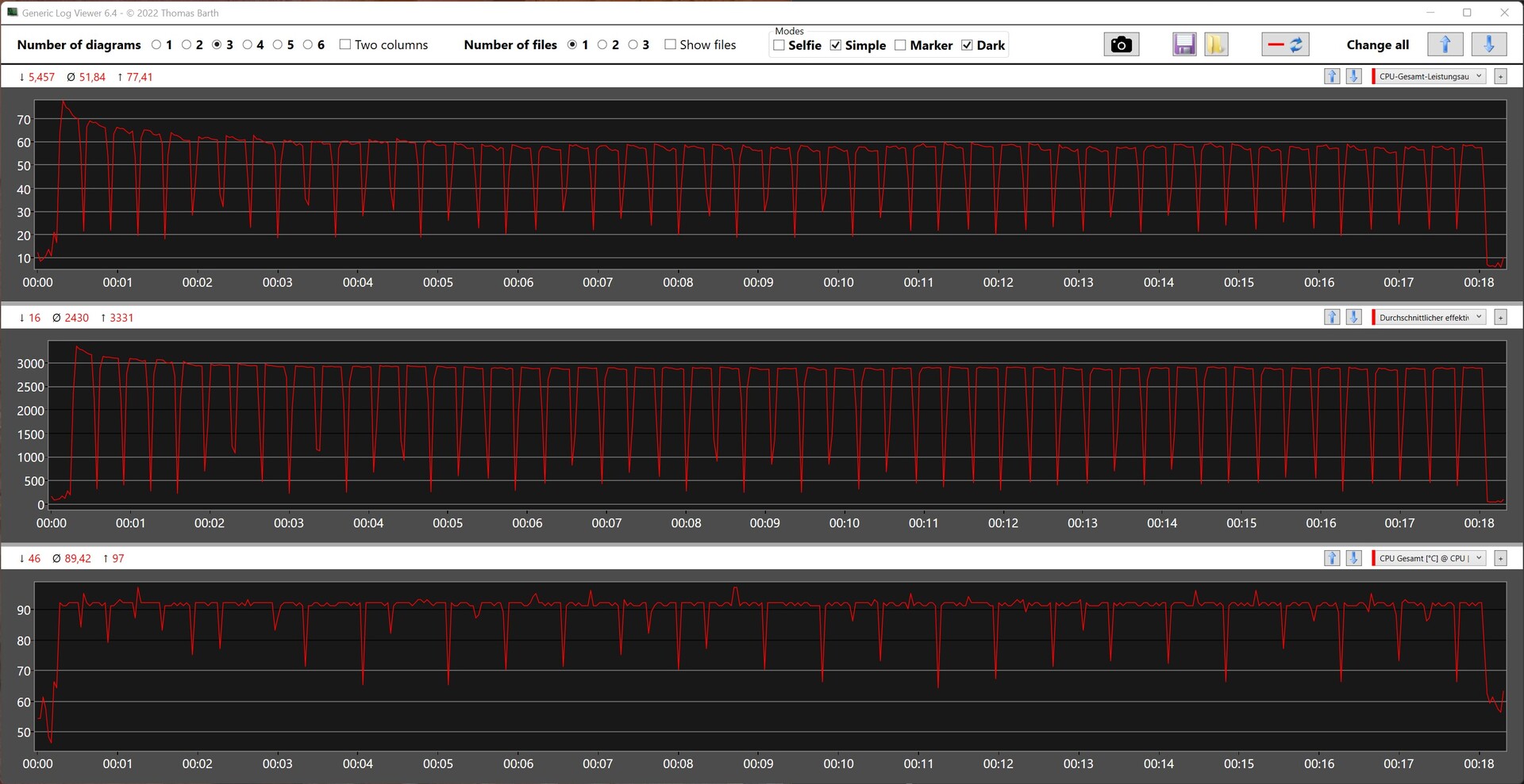 In contrast, there were no problems with the GPU. A benchmark after the stress test did not show a worse result compared to the cold start.
