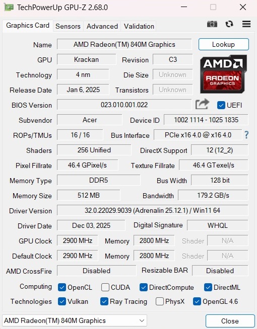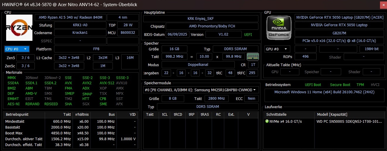| Acer Nitro V 16 AI ANV16-42-R860 AMD Ryzen 5 240 ⎘ NVIDIA GeForce RTX 5050 Laptop ⎘ 16 GB Memory, 1024 GB SSD | Amazon: $1,049.00 List Price: 1100 EUR | 2.4 kg | 24.5 mm | 16.00" 1920x1200 142 PPI IPS | |