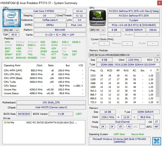 | Acer Predator Triton 500 PT515-51-71PZ WDC PC SN720 SDAPNTW-512G | Gigabyte Aero 15 Classic-XA Intel SSD 760p SSDPEKKW512G8 | Asus Zephyrus S GX502GW 2x Intel SSD 660p SSDPEKNW512G8 (RAID 0) | MSI GS65 Stealth 9SG Samsung SSD PM981 MZVLB512HAJQ | Razer Blade 15 RTX 2080 Max-Q Samsung SSD PM981 MZVLB512HAJQ | |