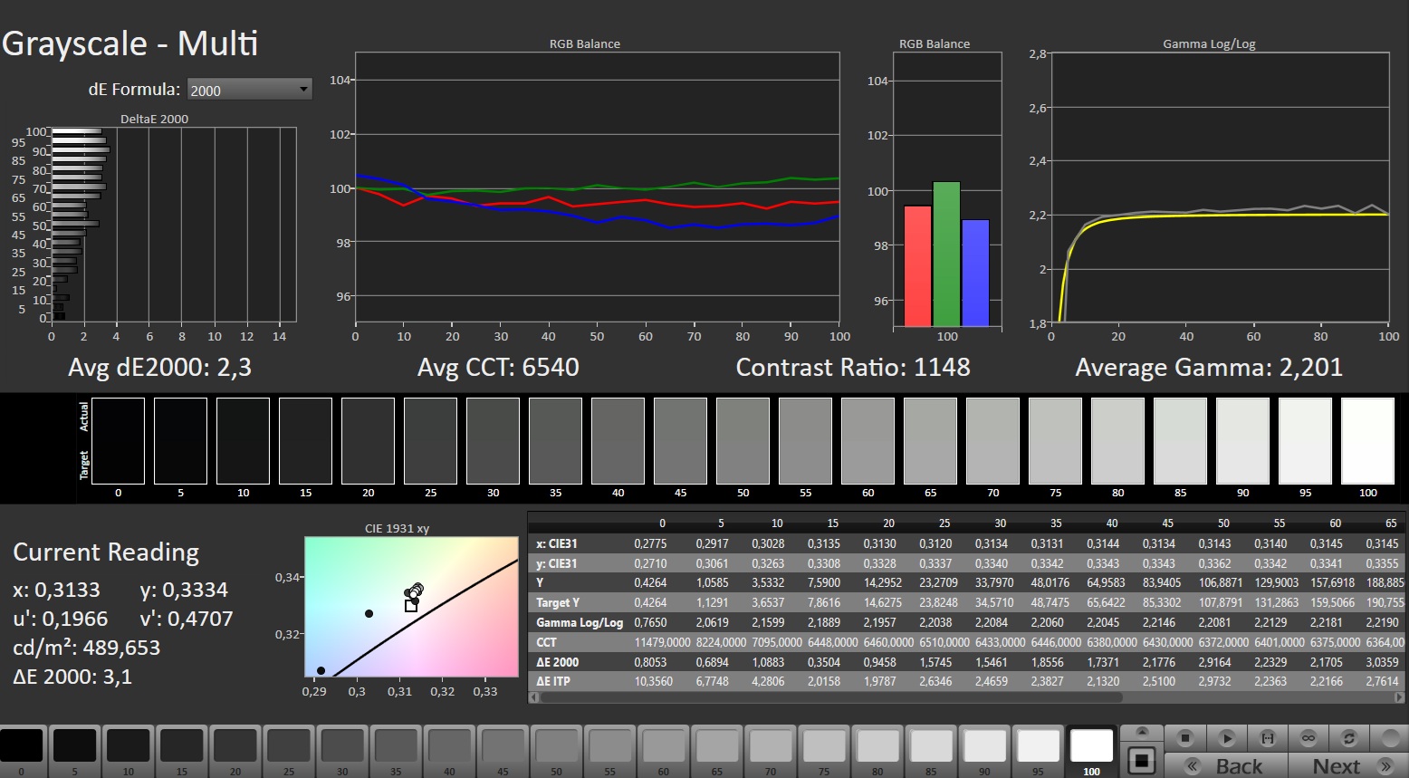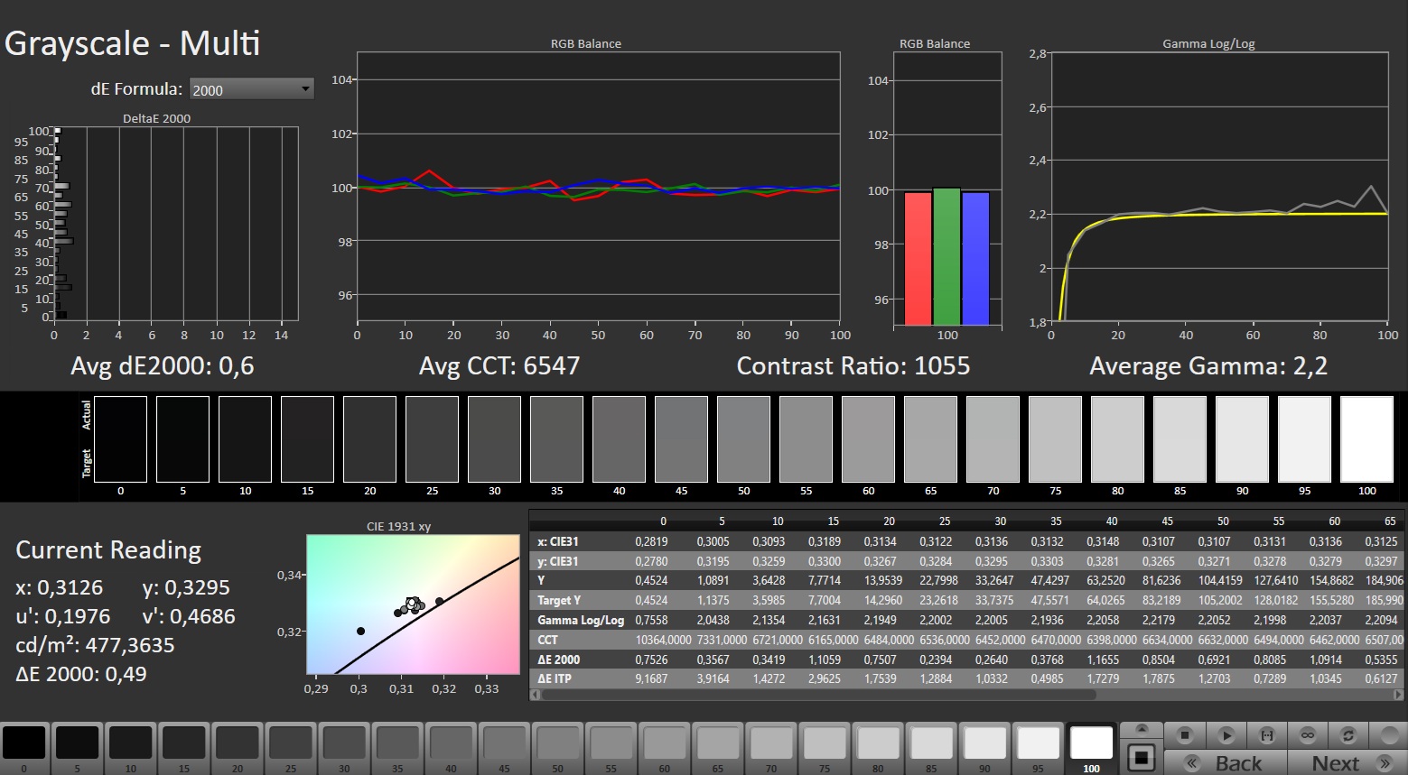 ΔE Greyscale Calman: 2.3 | ∀{0.09-98 Ø5.1}