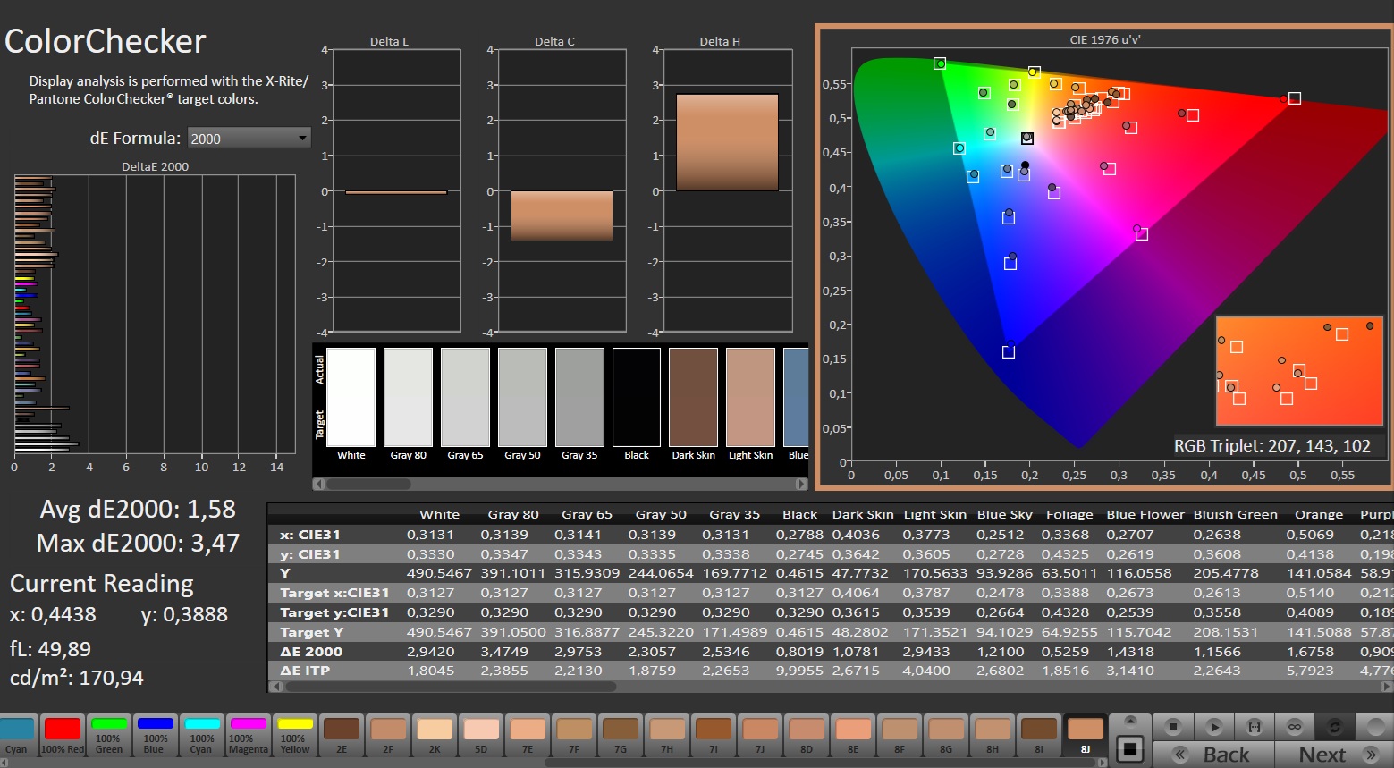 ΔE ColorChecker Calman: 1.58 | ∀{0.5-29.43 Ø4.81}