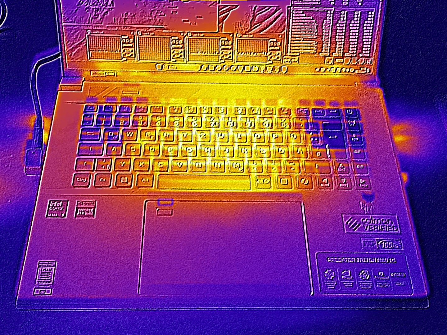 (-) The average temperature of the palmrest area of similar devices was 28.9 °C / 84 F (-5.1 °C / -9.2 F).