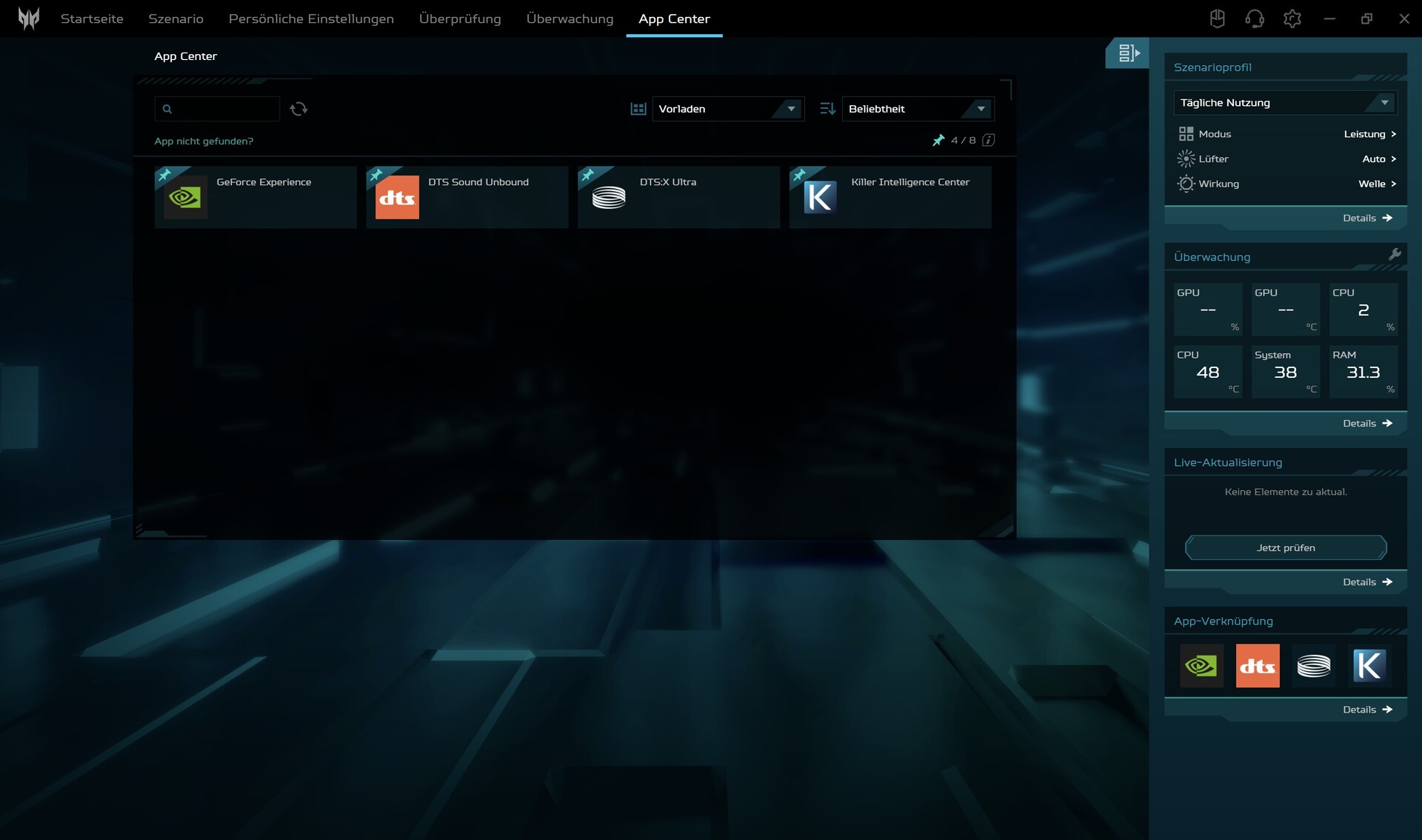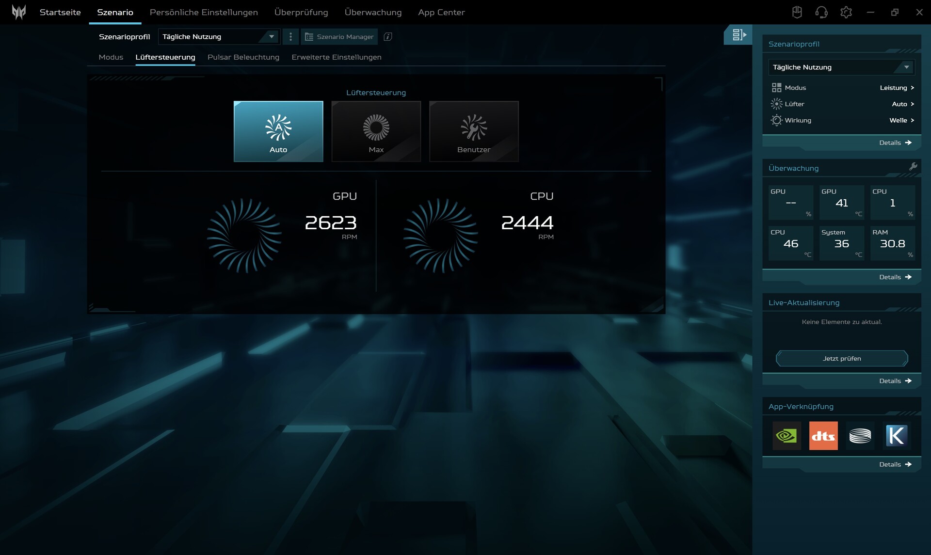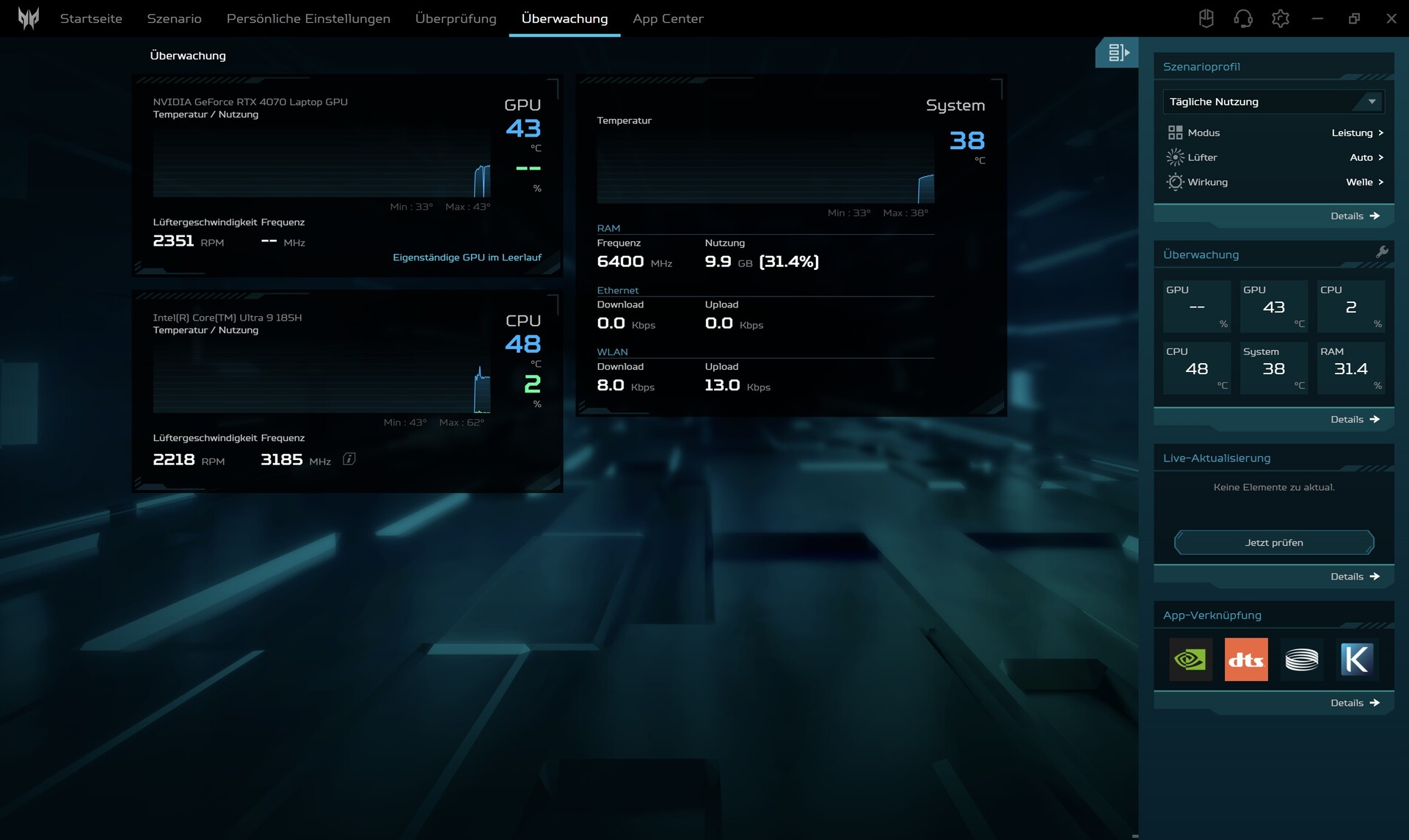 When it comes to temperatures, the Acer offshoot isn't out of line at all. A maximum of 46 °C on the top and a maximum of 48 °C on the bottom are typical for an RTX 4070 device. In idle mode, the case stays below the 30 °C mark and therefore remains nice and cool.